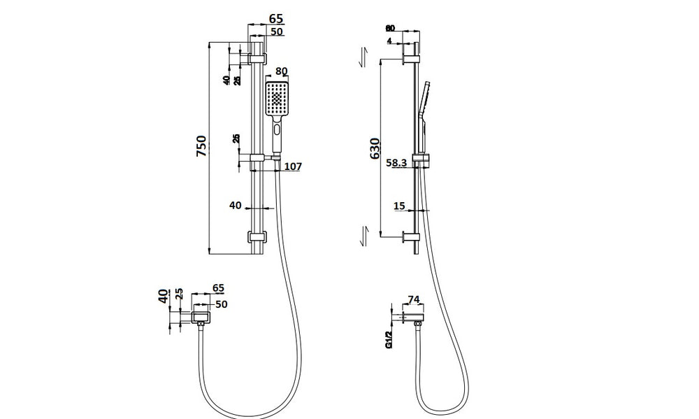 Essence Chrome Square Shower on Rail V2